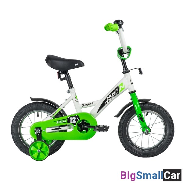 Велосипед NOVATRACK 12" STRIKE белый-зелёный, тормоз нож., корот.крылья, полная защита цепи